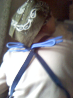 暫くして何かキャッキャしてんなーと思ったら、クロスさせてエプロンの背中にかませてやがる…!